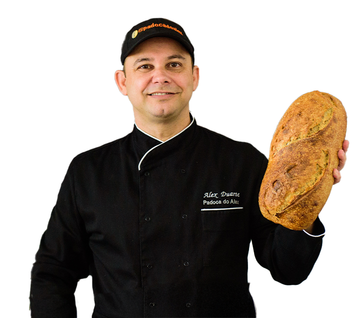 Alex Duarte, proprietário de ISPA – Instituto Sourdough Padoca do Alex. Alex já ministrou aulas para mais de 200 mil pessoas. De forma presencial e online. Seu Instituto, o ISPA, é referência nacional em panificação artesanal com fermentação natural. São 10 anos de experiência fazendo pães com excelência. Com uma história de sucesso no ramo, ele irá compartilhar segredos e práticas que vão acelerar sua jornada para o sucesso.