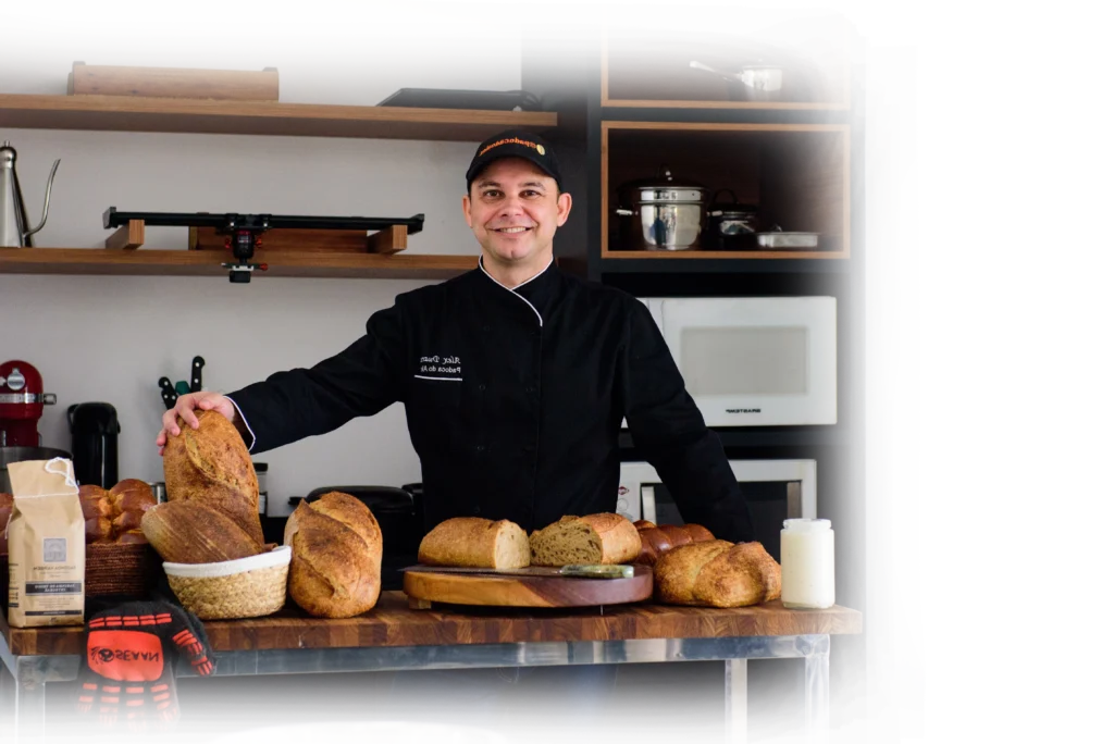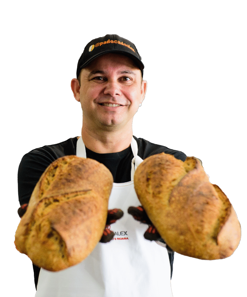 Meu nome é Alex Duarte, fundador do ISPA – Instituto Sourdough Padoca do Alex, e ao longo da minha trajetória já ensinei mais de 200 mil pessoas, entre alunos presenciais e online.